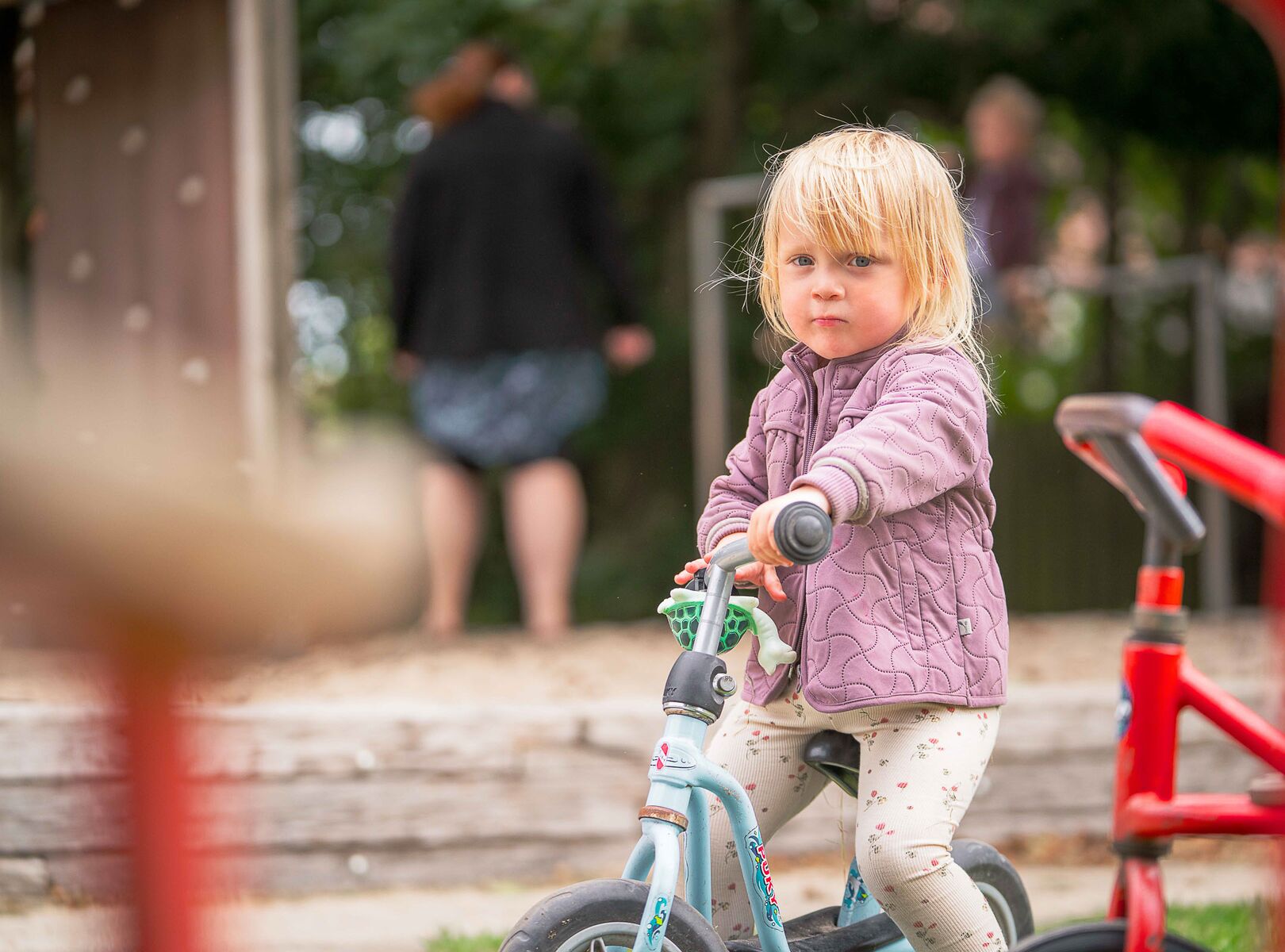 Udendørs har vi en stor legeplads med god plads til bevægelse, rollelege og udforskning – samt bålpladser, hvor vi samles til hyggelige og læringsrige stunder i naturen.